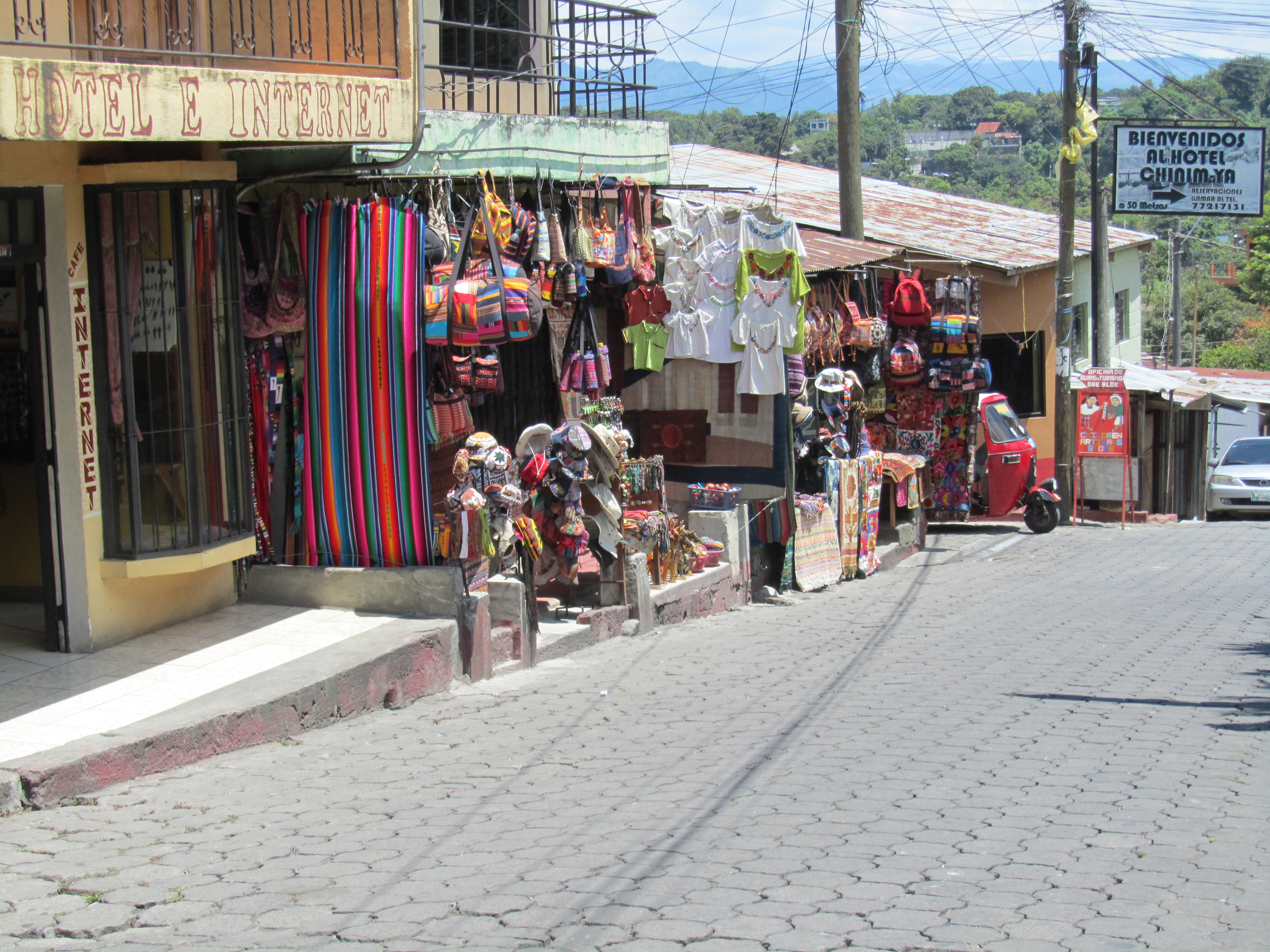 Our only way to Santiago is by boat; and the boat that goes to Santiago leaves from San Pedro. We first have to take a boat to San Pedro then go to the second dock to catch the boat to Santiago. The dock at Santiago is newer and in better condition that many of the other docks of the lake communities. But its drawback is dozens of children that immediately swarm around you as you depart from the boat trying to sell you trinkets. Ignoring them is almost impossible but we manage to get to a tuk tuk and have the driver take